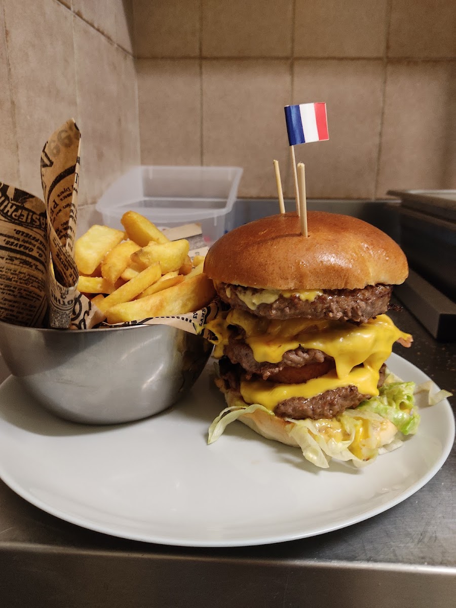 The highlight of the menu at Burger Faster Issoire is their mouthwatering cheeseburger. It’s a fan favorite, loaded with fresh ingredients, perfectly melted cheese, and a juicy patty, all tucked inside a soft, toasted bun. If you're in the mood for something light, the Salade César is an excellent choice, offering a refreshing mix of crisp lettuce, savory parmesan, and a delicious Caesar dressing that pairs perfectly with their burgers. For seafood lovers, don’t miss Le Gambas, a dish that showcases succulent, well-seasoned shrimp served with a side of your choice - a true delight for those who love fresh flavors.